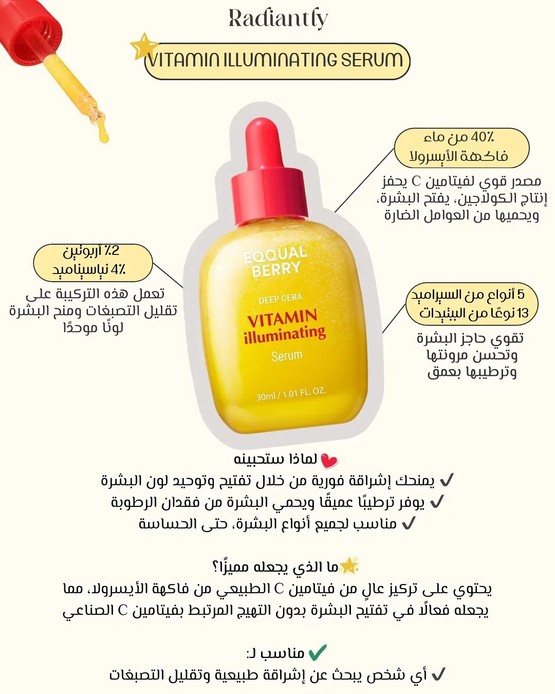 ودّعي البهتان والبقع الداكنة… ورحّبي ببشرة مشرقة ونضرة! هذا السيروم الكوري الأصلي يجمع بين قوة فيتامين C وفعالية النياسيناميد ليمنحك: